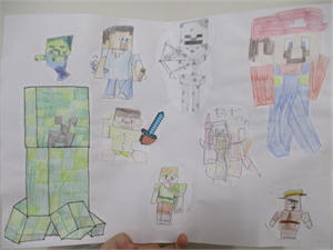 オリジナルのパズル作り (放課後等デイサービス) 1年生のKくんが、コツコツと描いて完成させたマイクラの絵。 いろんなキャラクターが、 様々な大きさや色合いで描かれていて、とても楽しいです。 この絵を段ボール紙に貼り付けたあと、切り込みを入れ、 オリジナルのパズルに仕立てました。 おもしろいアイデアです! 私もやらせてもらうことになっています!!!
