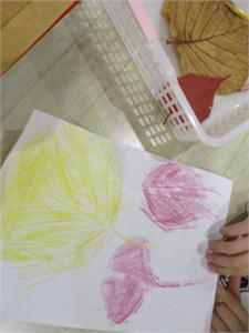 フロッタージュ (放課後等デイサービス) 暗くなるギリギリまで みんな元気に公園遊びを楽しんでいます。 公園で拾った落ち葉を使い、 フロッタージュ(こすり絵)をしました。 さまざまな葉っぱの形がうきでてくる様を みんなでワイワイ言いながら見せ合い、 過ぎていく秋と、冬の訪れを楽しんでいました。